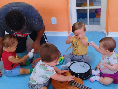 Para todos os segmentos, as aulas de musicalização são uma vivência enriquecedora que apresenta às crianças o mundo dos sons, ritmos e melodias de forma acolhedora e interativa. Utilizando instrumentos simples, músicas e brincadeiras, incentivamos a sensibilidade auditiva, a expressão corporal e a coordenação motora, tudo em um ambiente de liberdade e alegria. Além de despertar o prazer pela música, a musicalização promove o desenvolvimento cognitivo, emocional e social, ajudando as crianças a expressarem suas emoções e a explorarem sua criatividade.