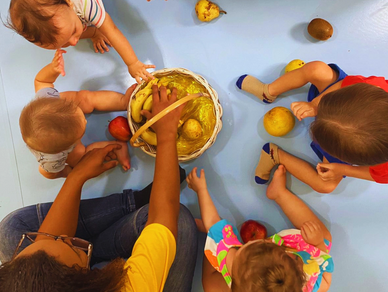 No projeto Cesta de Frutas, as crianças exploram diferentes frutas de maneira divertida e educativa, aprendendo a identificar texturas, aromas e sabores. A cada semana, elas têm a oportunidade de experimentar e manusear novas frutas, desenvolvendo o paladar e entendendo a importância de uma alimentação saudável.